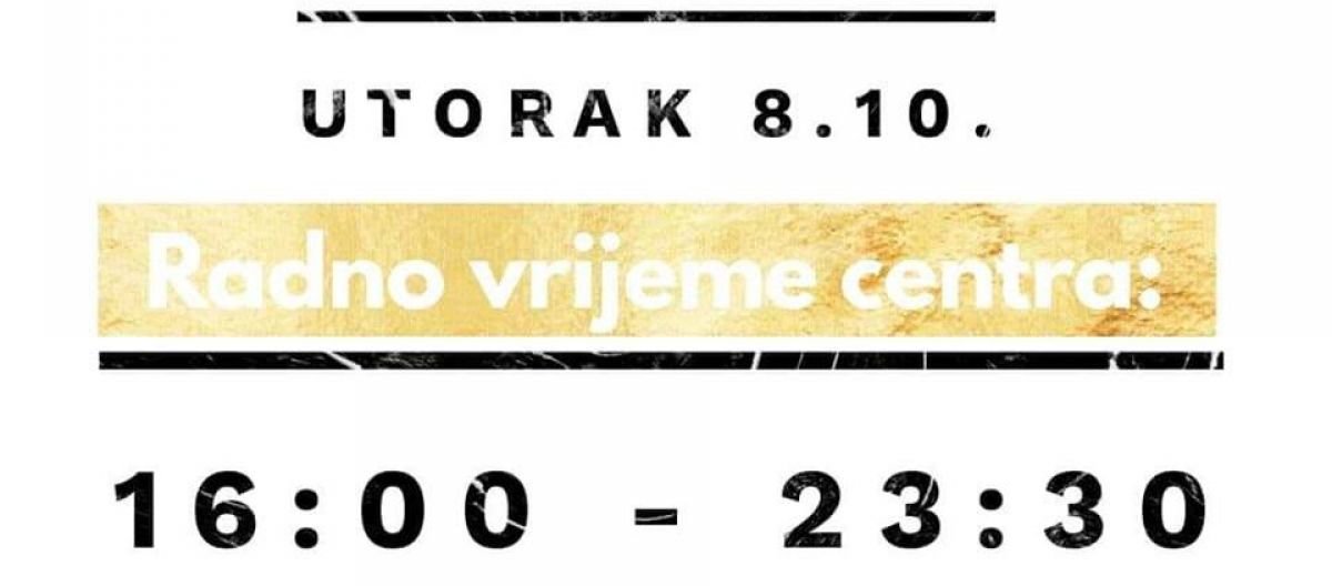 3. listopada 2019. Centar će raditi samo popodne od 16h do 23:30h (teretana do 22h). 😀😊😀Grupni treninzi se neće održati.