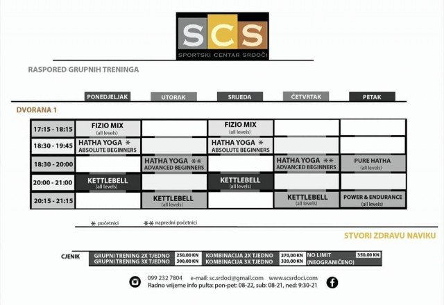 Fizio mix će se održavati ponedjeljkom i srijedom, bez treninga petkom, a Power&Endurance petkom počinje od 20:15h do 21:15h.