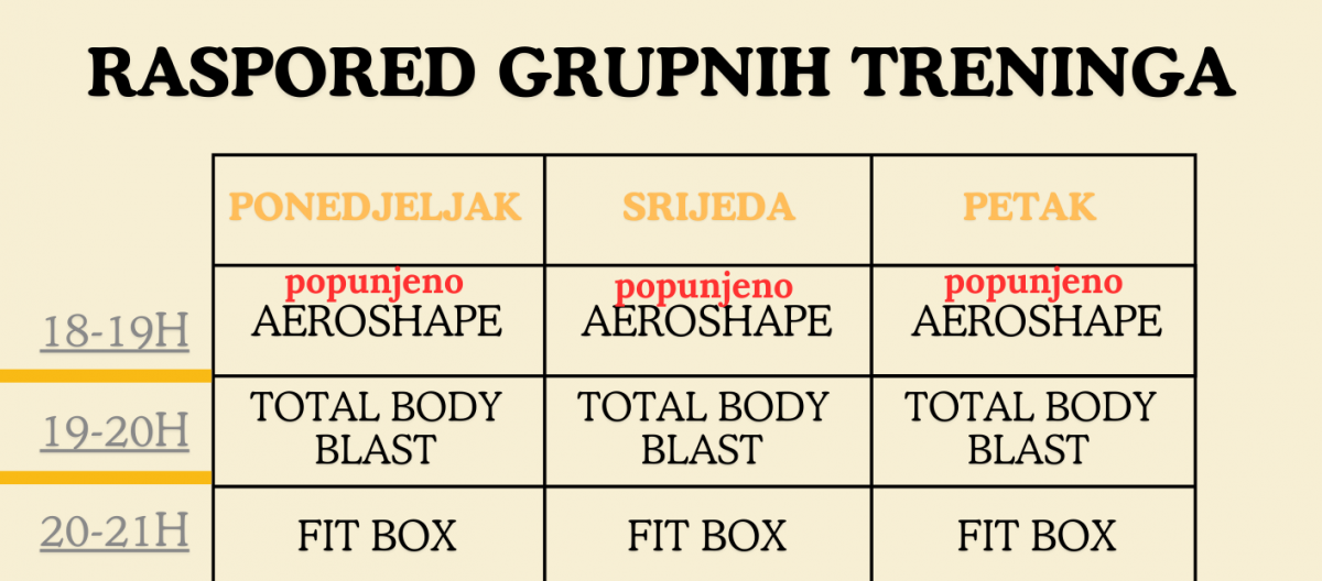 Raspored grupnih treninga